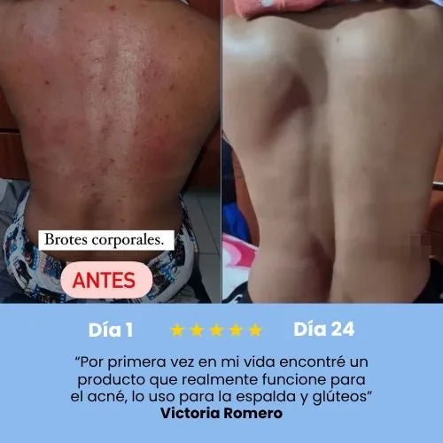 • Acné corporal (espalda, pecho, glúteos, brazos).